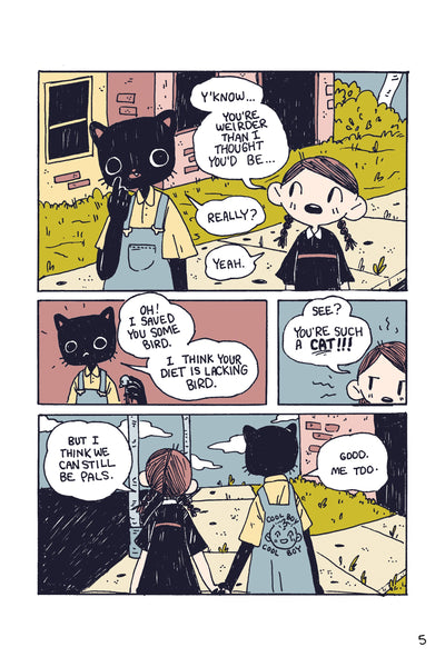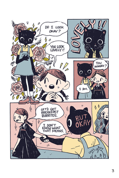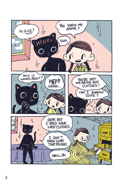 Olive is a human, and Henry is her pet cat—although he's also a person, thanks to a magic shooting star. They do all the things best friends do, like share clothes, go to parties, and complain about their jobs. Who cares if Henry gets more compliments wearing Olive's clothes, or the party snacks are dead rats? Friends love each other no matter what.