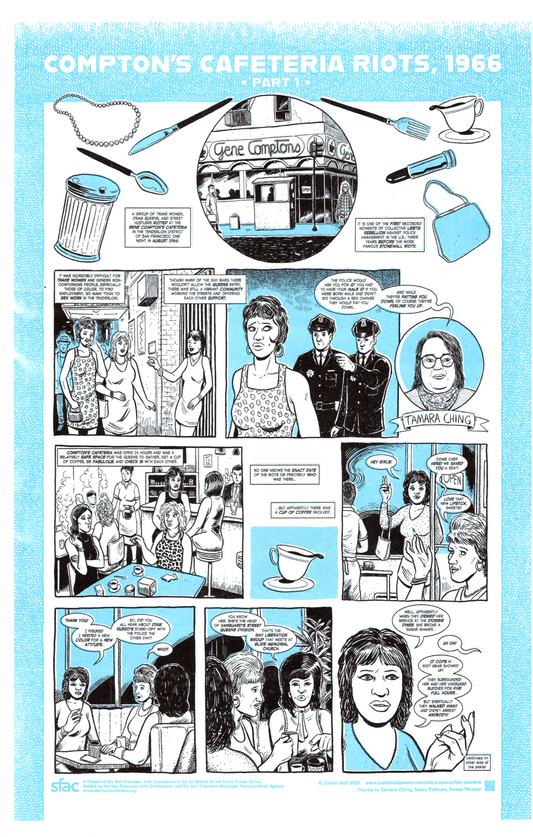Compton's Cafeteria Riots 1966, Riso Diptych Justin Hall (blue)
