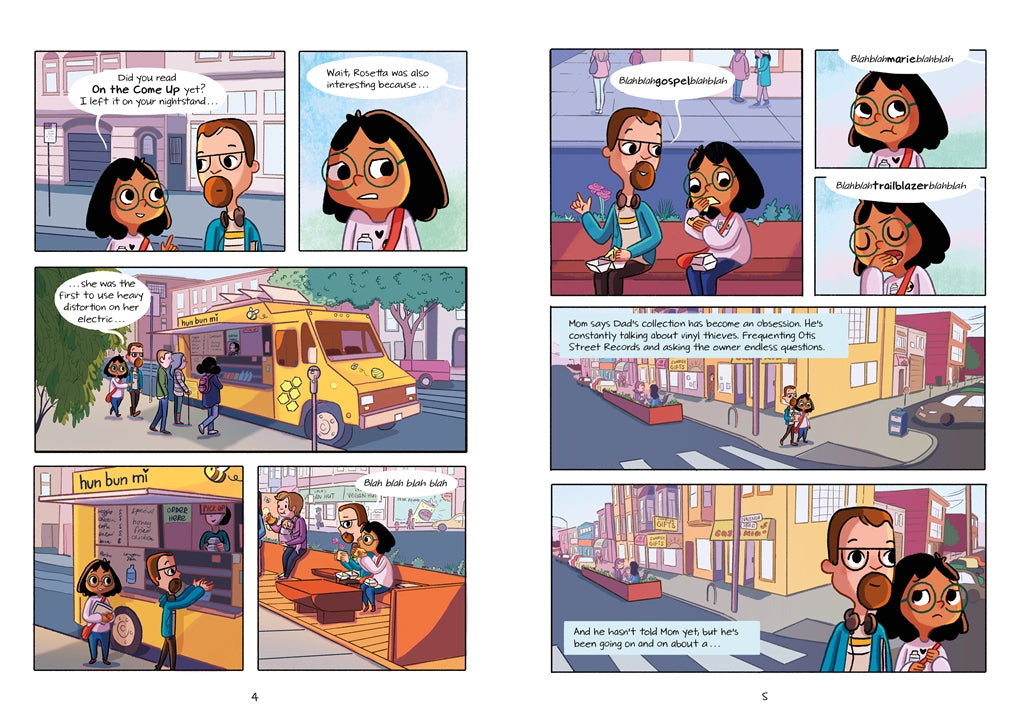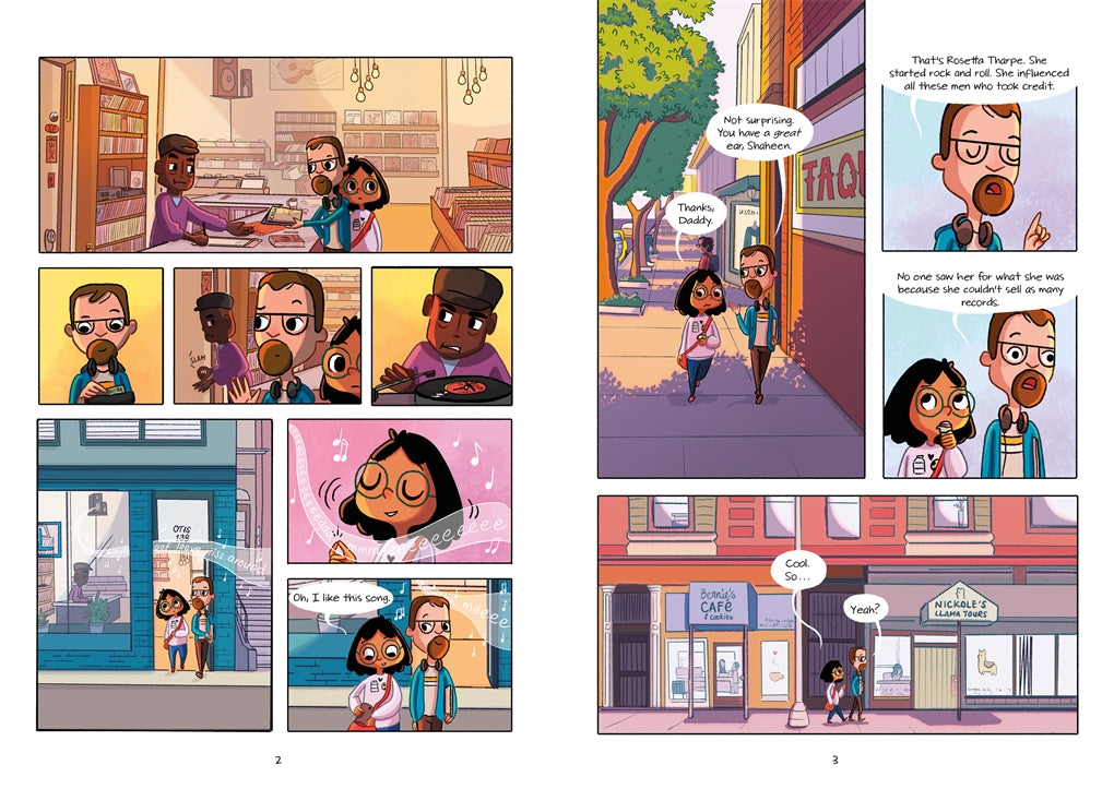Suddenly, the girls are pulled from their era and transported to another time! Keyed to the music on the record, the jukebox sends them through decade after decade of music history, from political marches, to landmark concerts. But can they find Shaheen’s dad before the music stops? This time-bending magical mystery tour invites readers to take the ride of their lives for a coming-of-age adventure.