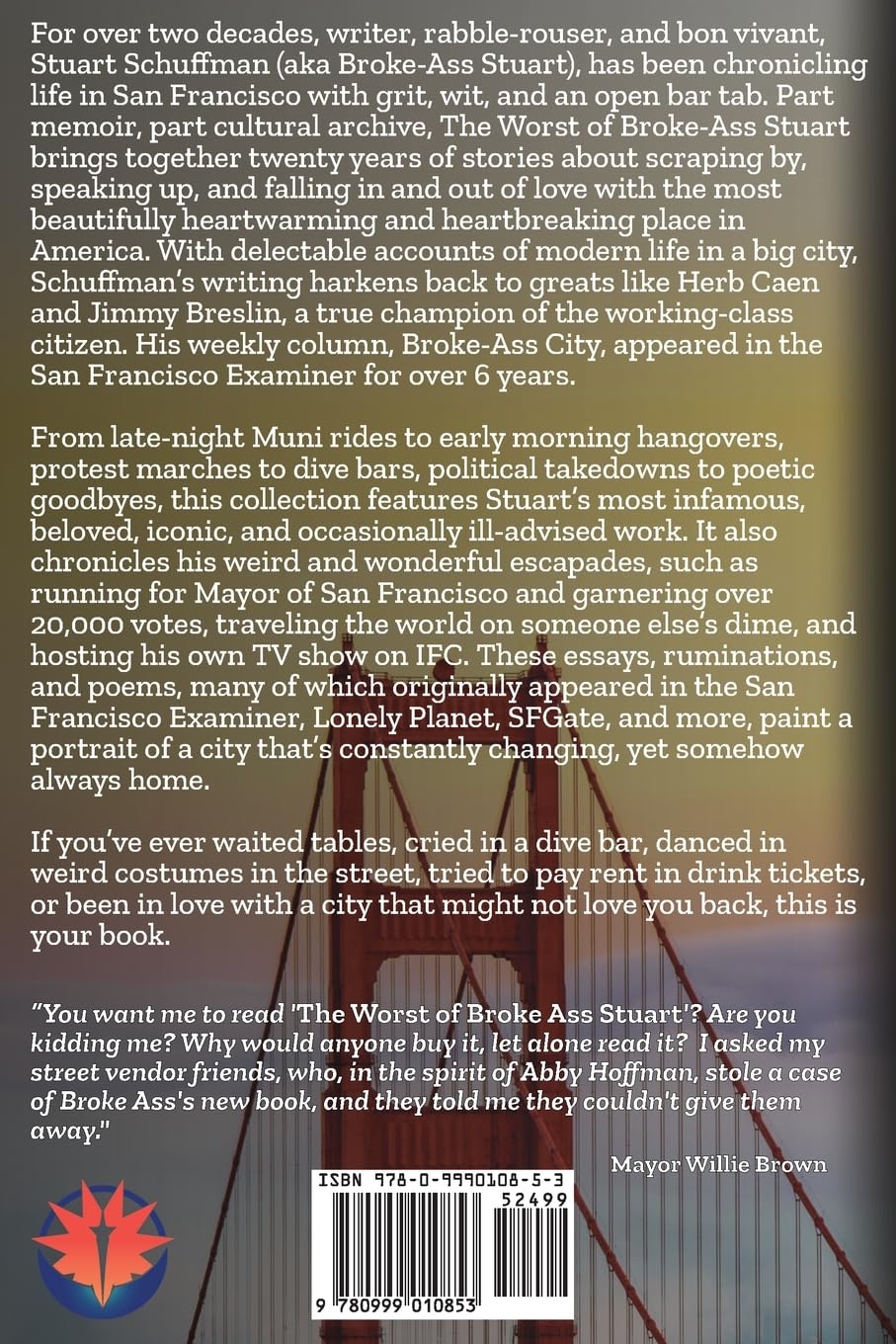 For over two decades, writer, rabble-rouser, and bon vivant, Stuart Schuffman (aka Broke-Ass Stuart), has been chronicling life in San Francisco with grit, wit, and an open bar tab. Part memoir, part cultural archive, The Worst of Broke-Ass Stuart brings together twenty years of stories about scraping by, speaking up, and falling in and out of love with the most beautifully heartwarming and heartbreaking place in America. With delectable accounts of modern life in a big city, Schuffman's writing harkens back to greats like Herb Caen and Jimmy Breslin, a true champion of the working-class citizen. His weekly column, Broke-Ass City, appeared in the San Francisco Examiner for over 6 years.