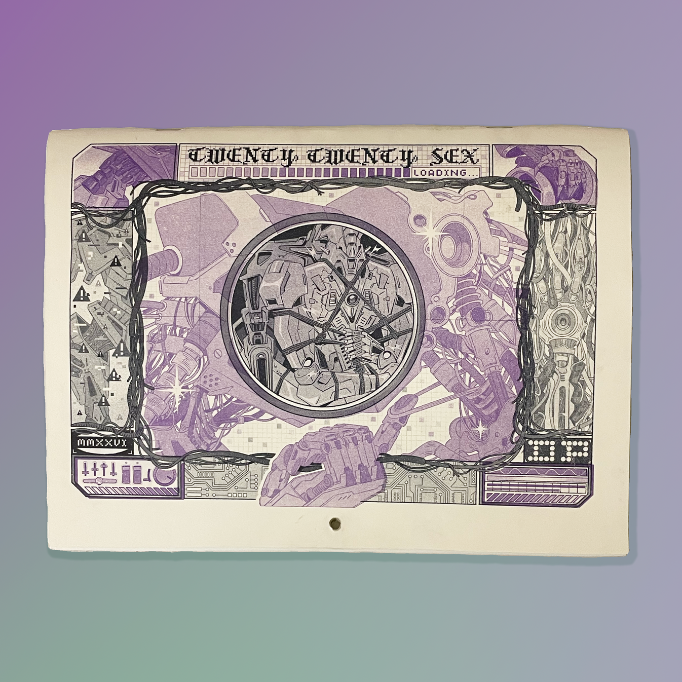 Calendar will be riso printed in Orchid, Purple, Blue, and Midnight on natural stock. Saddle stiched with a hole for wall-hanging.