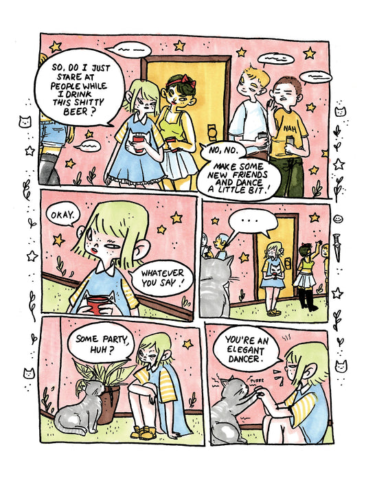 Olive is a human, and Henry is her pet cat—although he's also a person, thanks to a magic shooting star. They do all the things best friends do, like share clothes, go to parties, and complain about their jobs. Who cares if Henry gets more compliments wearing Olive's clothes, or the party snacks are dead rats? Friends love each other no matter what.