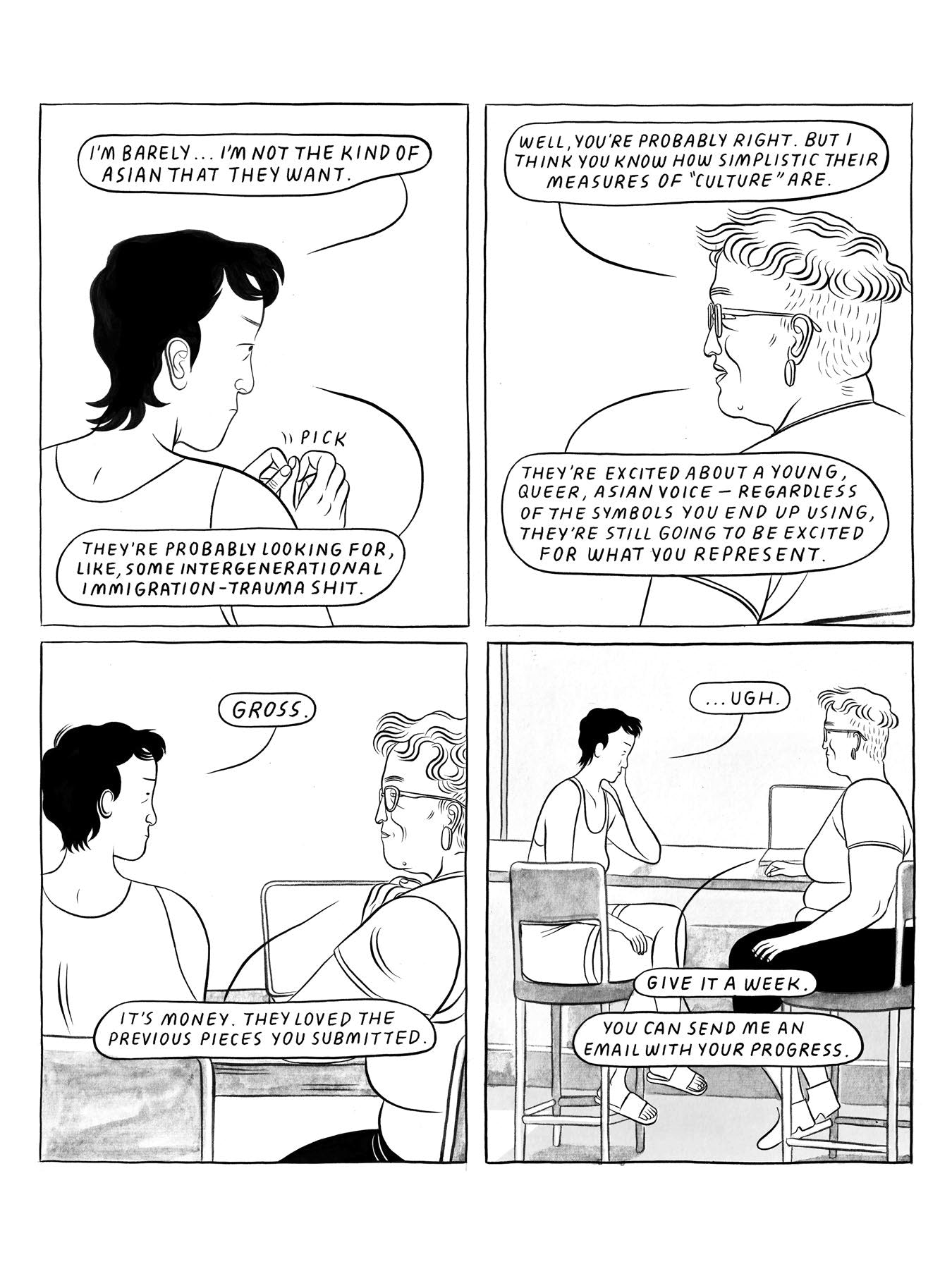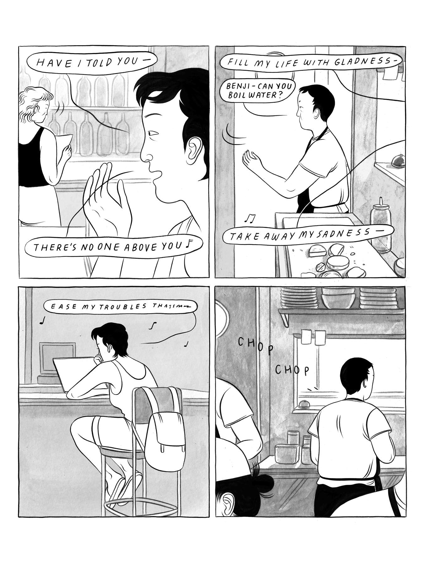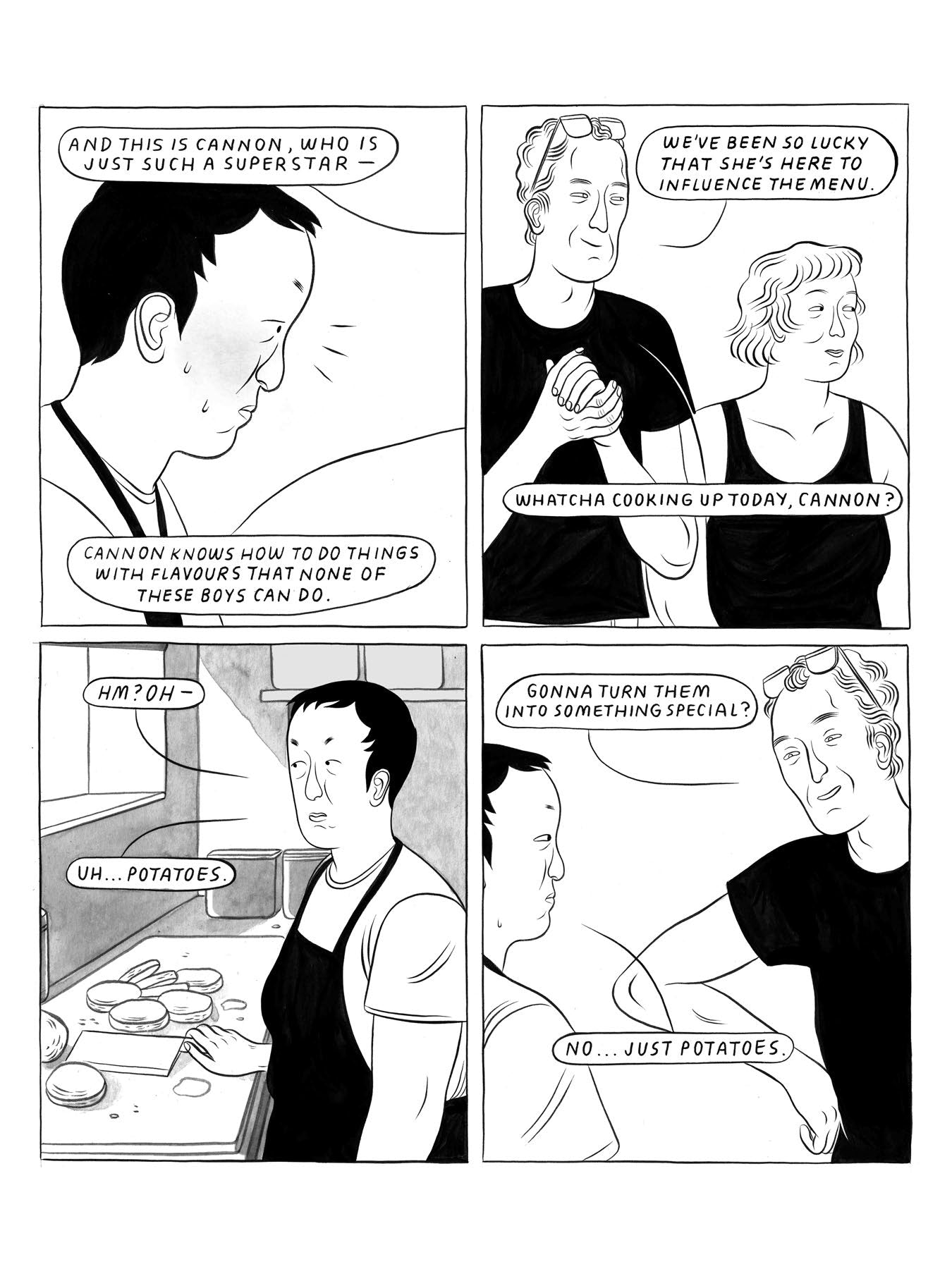 We arrive to wreckage—a restaurant smashed to rubble, with tables and chairs upended riotously. Under the swampy nighttime cover of a Montreal heat-wave, this is where we meet our protagonist, Cannon, dripping in little beads of regret sweat. She was supposed to be closing the restaurant for the night, but instead, well, she destroyed it. The mess feels a bit like a horror-scape—not unlike the horror films Cannon and her best friend, Trish, watch together. Cooking dinner and digging into deep cuts of Australian horror films on their scheduled weekly hangs has become the glue in their rote relationship. In high school, they were each other’s lifeline—two queer second-generation Chinese nerds trapped in the suburbs. Now, on the uncool side of their twenties, the essentialness of one another feels harder to pin down.
