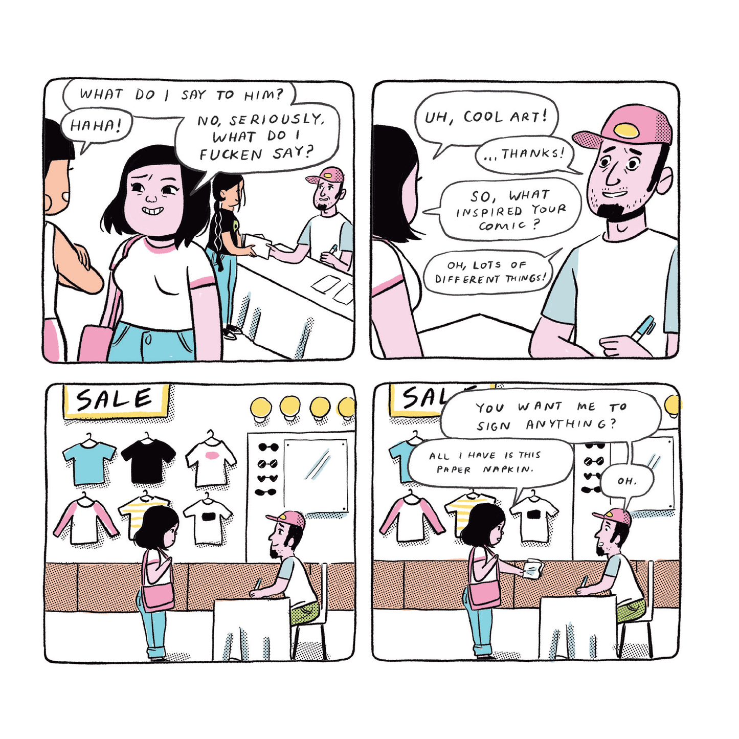 "Mel Stringer’s art and storytelling talent shine in this brilliant, beautiful graphic memoir that’s both personal and universal: the time somebody starts to become their true self. Her brilliant artwork and storytelling are somehow both intensely personal and universal, as well as funny, poignant and real. The more you look at Mel Stringer’s work, the more you see, and the more you realise what an awesome talent she is." – Kaz Cooke