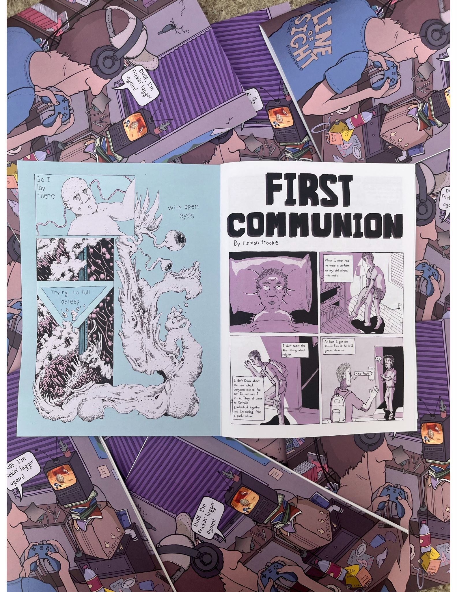 The comics range from fully abstract sequential art to auto-bio recounts of the author's past (or something in between). In this issue, Finnian recalls his first, and last, time receiving communion, jumping into a body of water, and lots of other bite sized morsels.