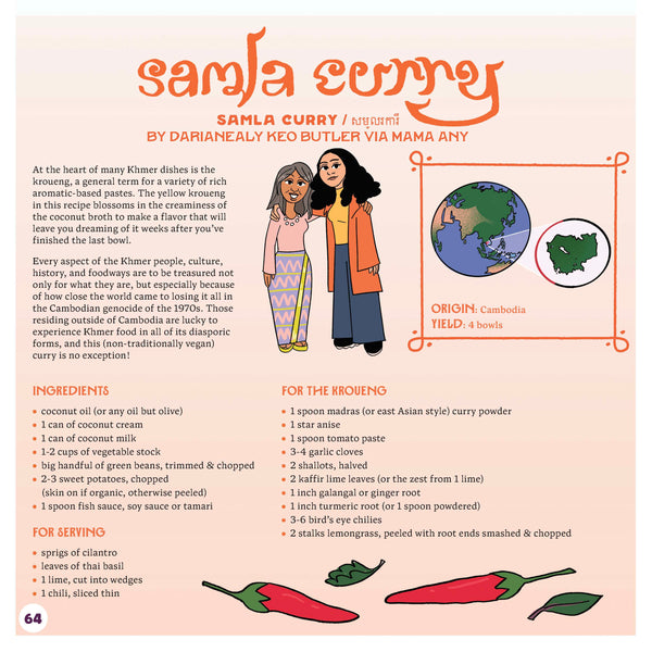 You can practice your new knowledge with the twenty delicious vegetarian recipes collected from family, friends, and contributors throughout the globe. From Persian kashk-e bademjan and Icelandic skyrterta to Mexican-Taiwanese horchata con boba, the recipes range from traditional to transformed, reflecting the way foods—like people—migrate, mix, adapt, and are remembered. This book was created with international and financial accessibility in mind, and the hope that readers of all backgrounds will find appreciation for the myriad people and flavors of our shared world.
