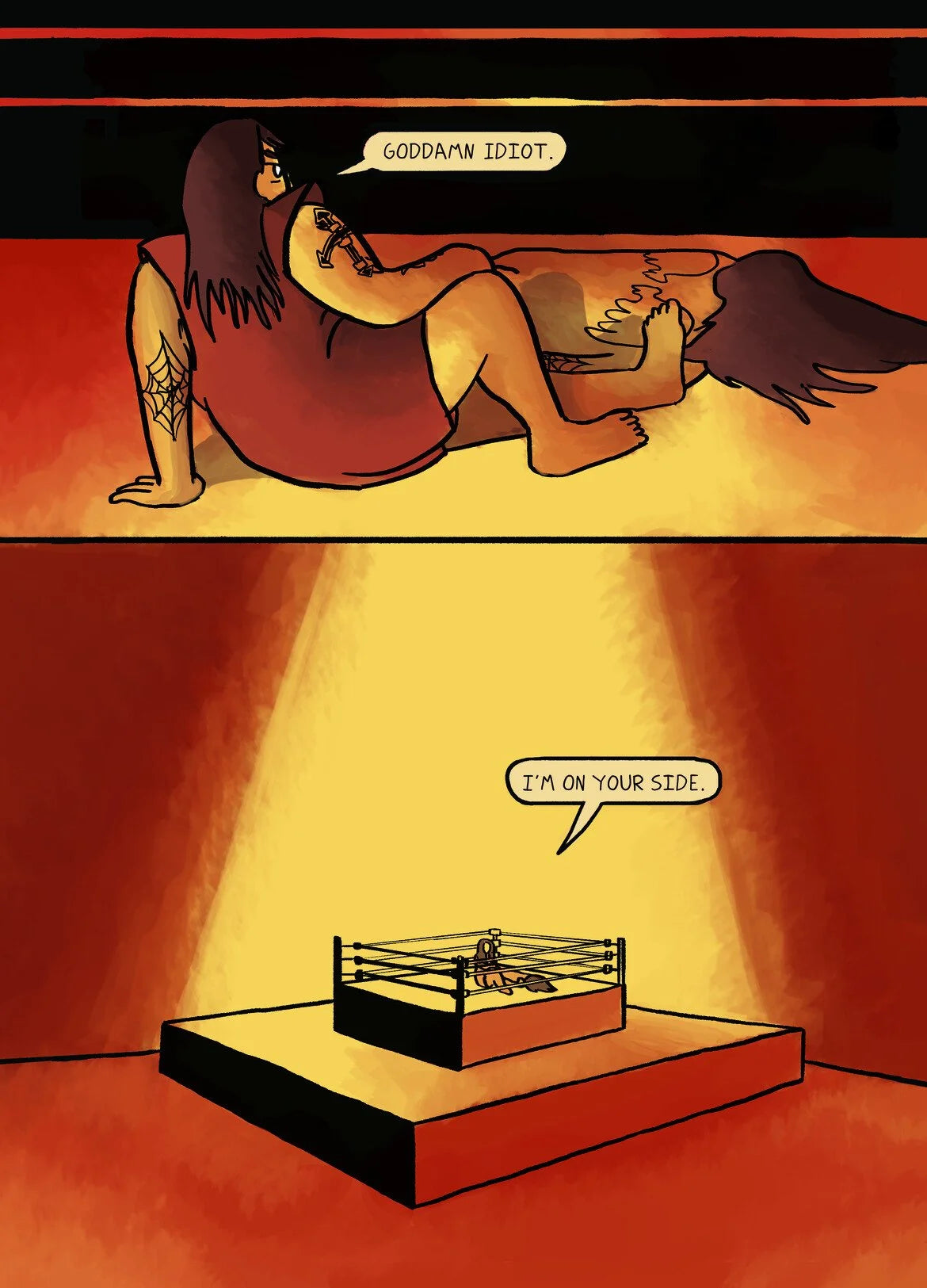 Audrey Morris is a trans woman who was once a popular professional wrestler. Transphobic management and a horrible in-ring accident drove her from the sport. Sequestered in a small town, she struggles with her identity, body dysmorphia, addiction, and isolation in a series of surreal, interior vignettes. Can she find self-acceptance and community in the face of her own trauma?