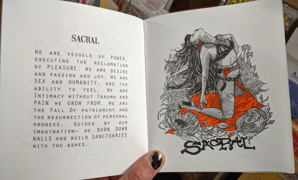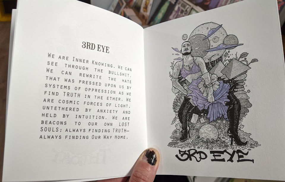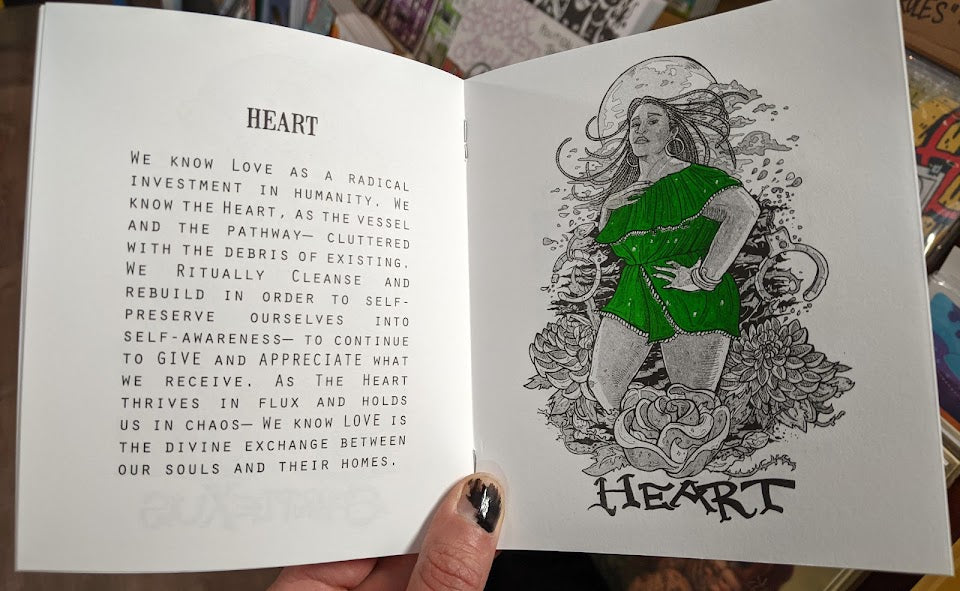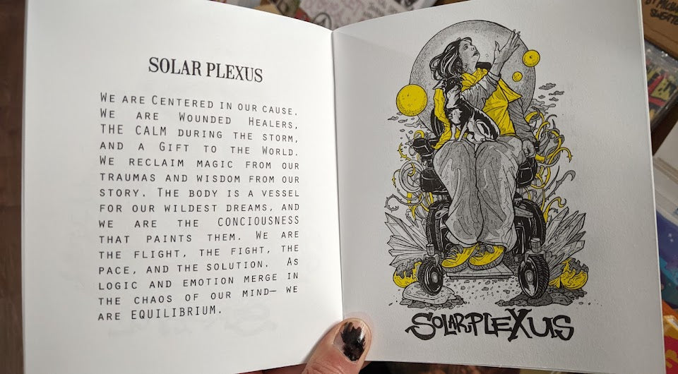 16 page 8-color Risograph zine of all seven chakras with writing and illustrations by Cristy C Road