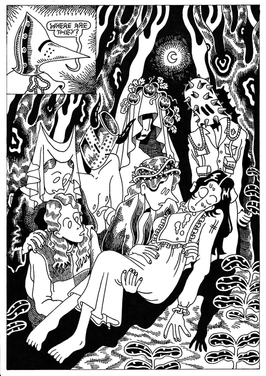 "The End" four-color Risograph print by Leo Fox with characters from Prokaryote Season