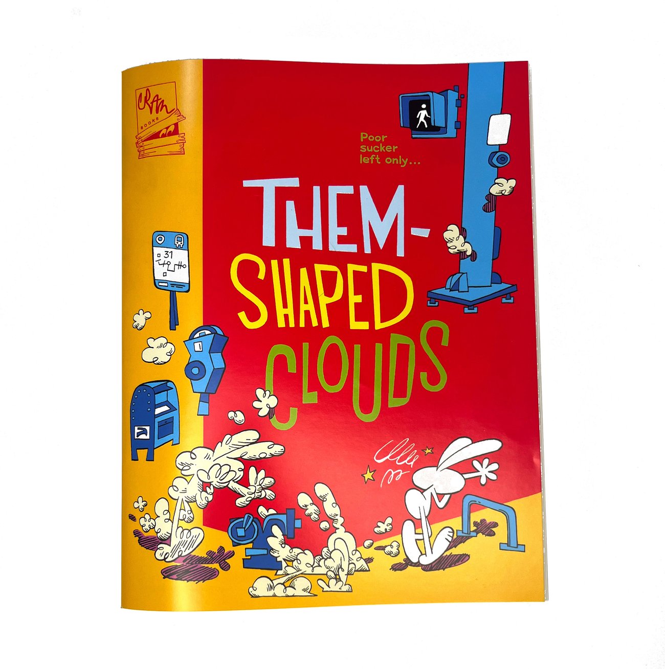 Cram Books presents a new collection of comic shorts by Max Huffman in peeper-popping 4-color risograph. Featuring the return of neighborhood ne'er-do-much Whisnant, "hit" comic strip "I'm Good", [BELOVED CARTOON ICON REDACTED]'s dealer and more.