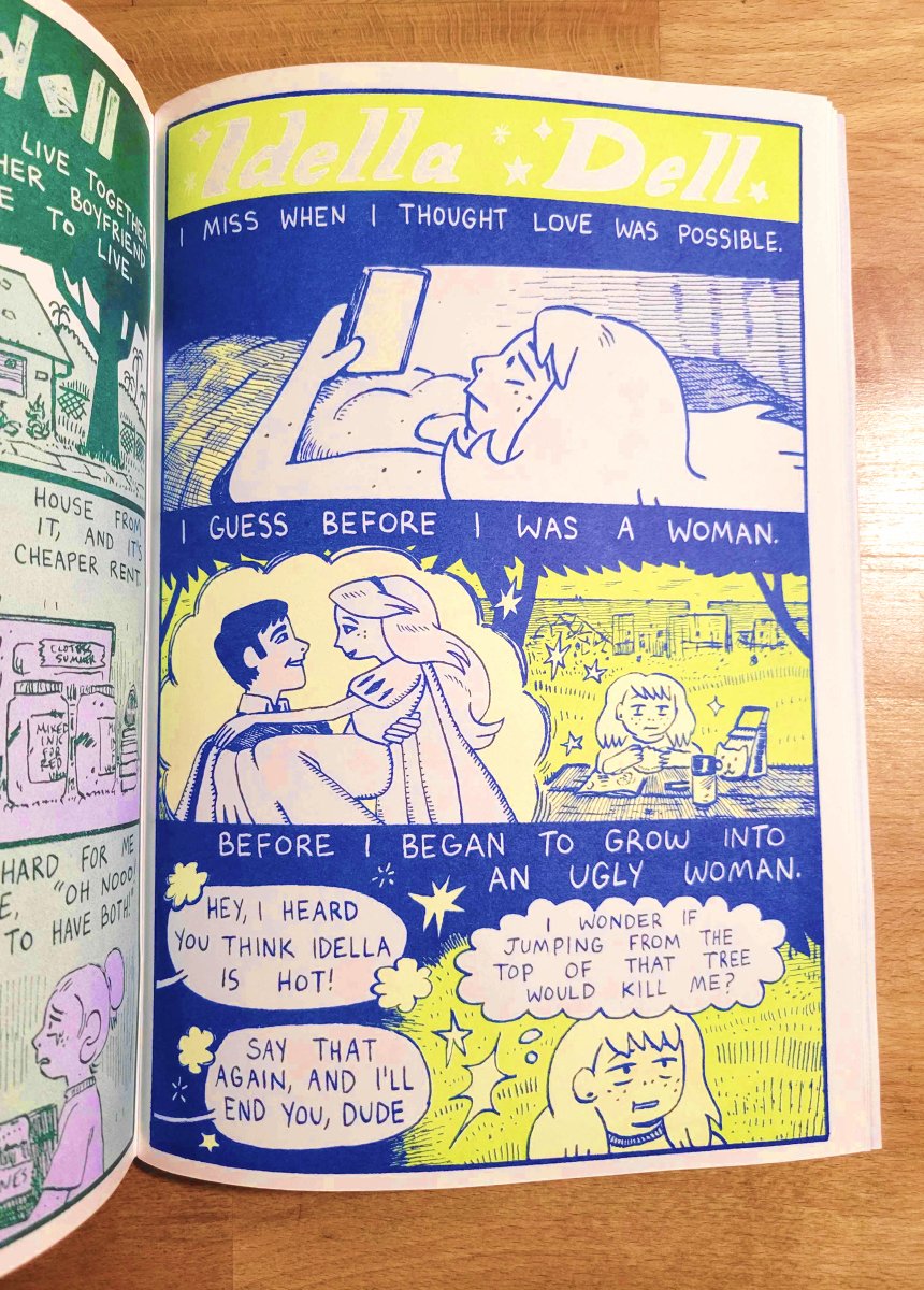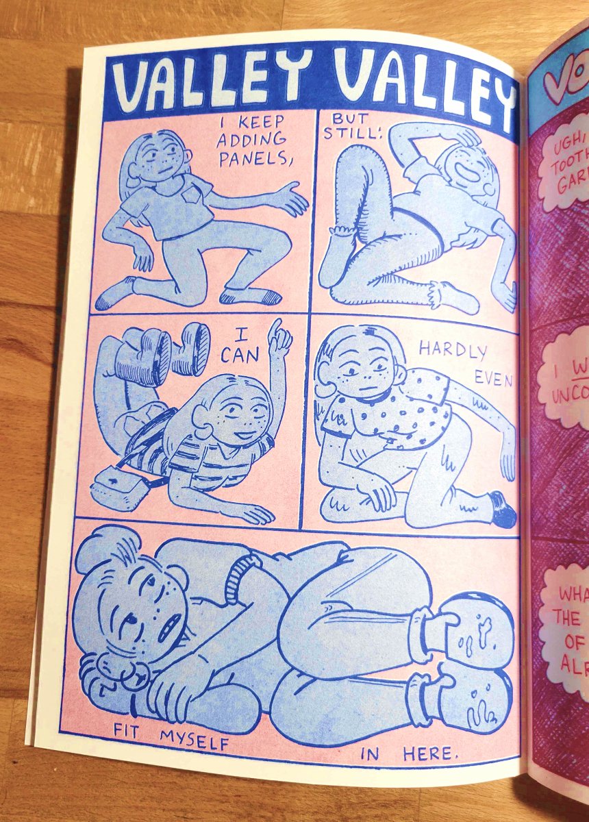 Valley Dale and Idella Anselm are cartoonist cousins who reside in the Southern coastal town of Star Valley. Resentment contends with guilt as the two navigate stilted social interactions, zine fairs, relationship woes, and comics awards shows in this special double digest. Two comics in one book: Valley Valley and Idella Dell.
